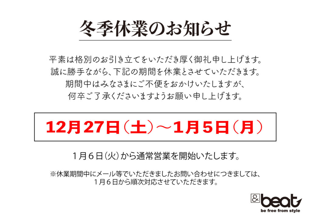 冬季休業のお知らせとご案内